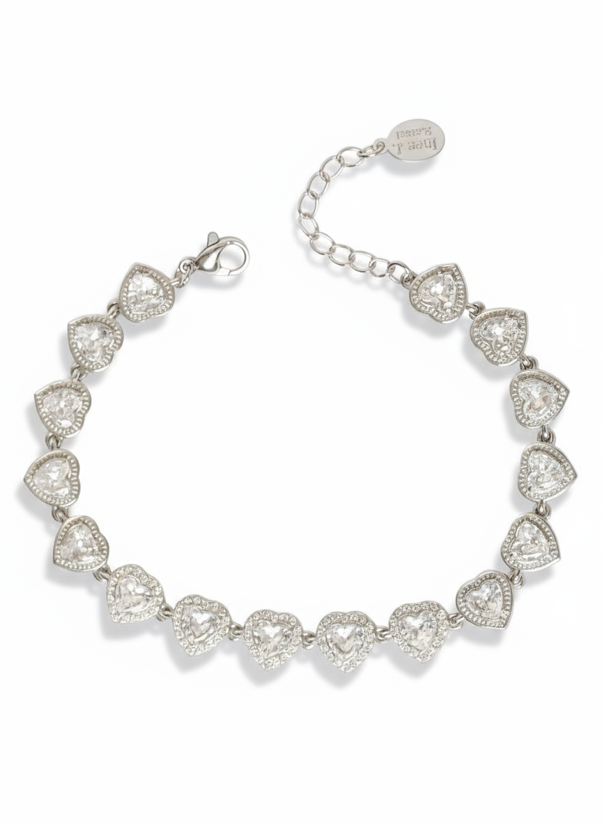 • Bracciale in acciaio inossidabile, morbido, bracciale con zirconi a cuore.