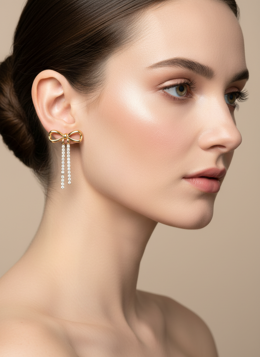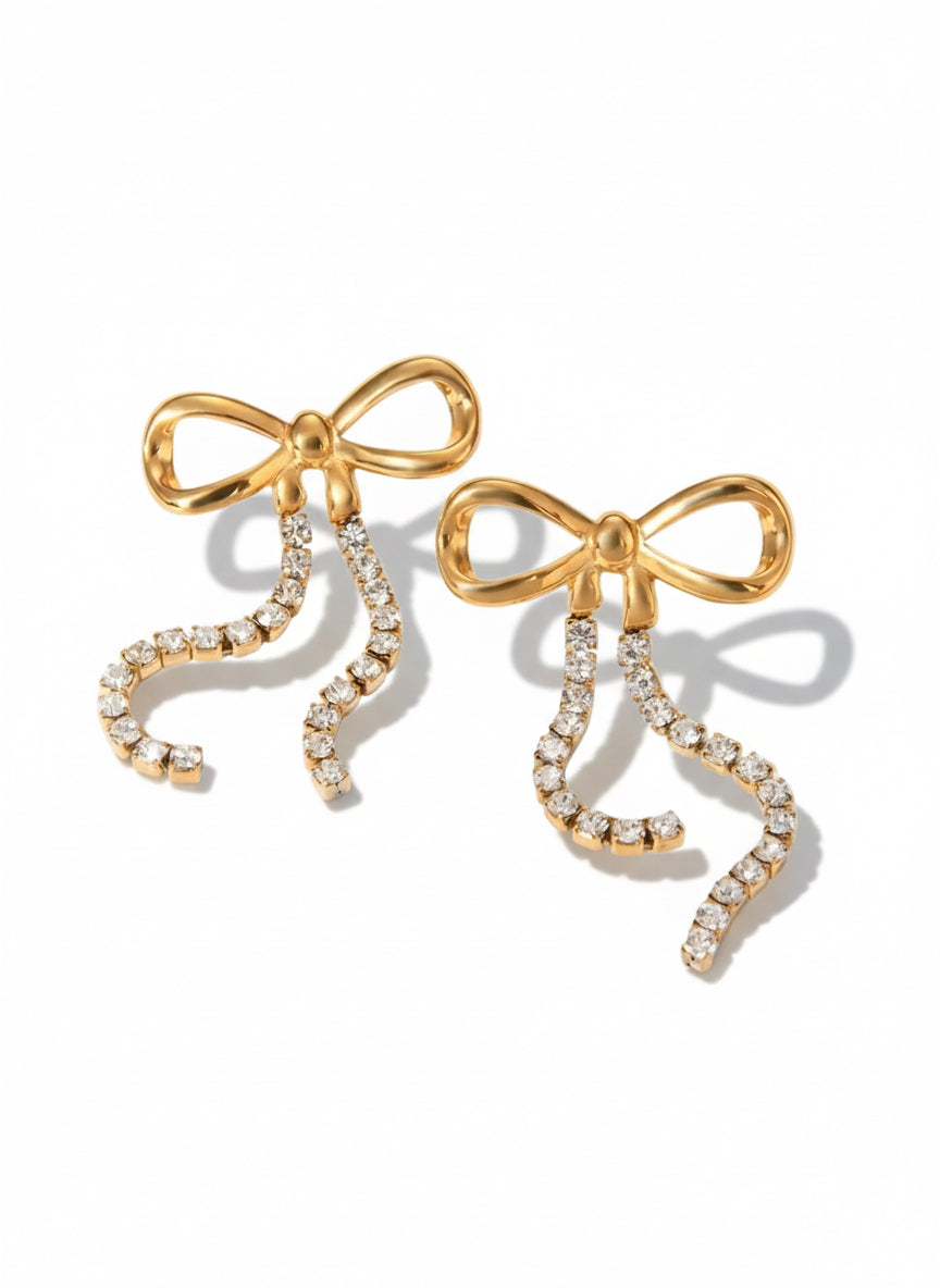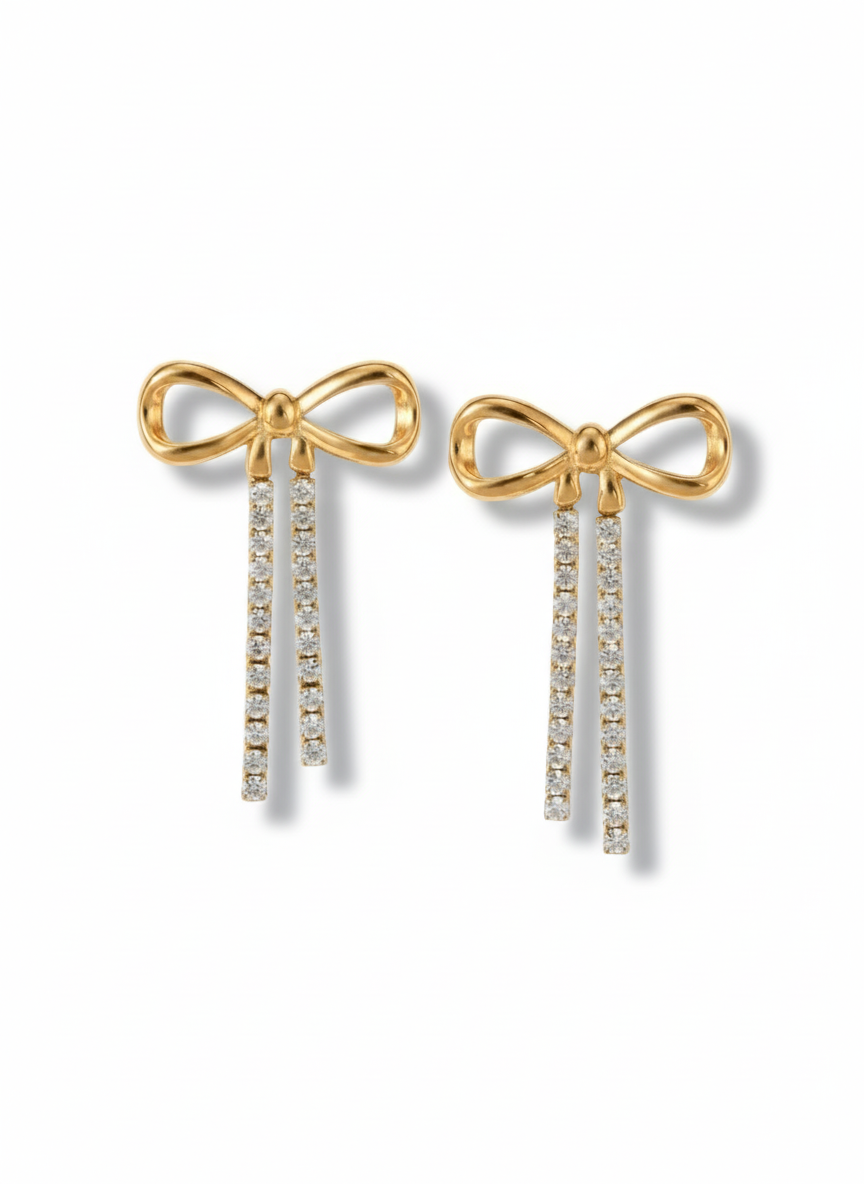 • Orecchini in acciaio inossidabile, orecchini a fiocco con fascia di zirconi pendente.