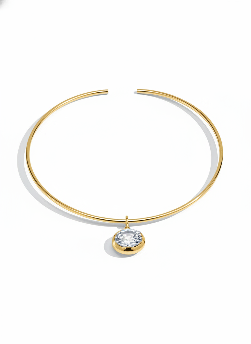 • Collana in acciaio inossidabile, maglia rigida liscia con pietra in zircone pendente.