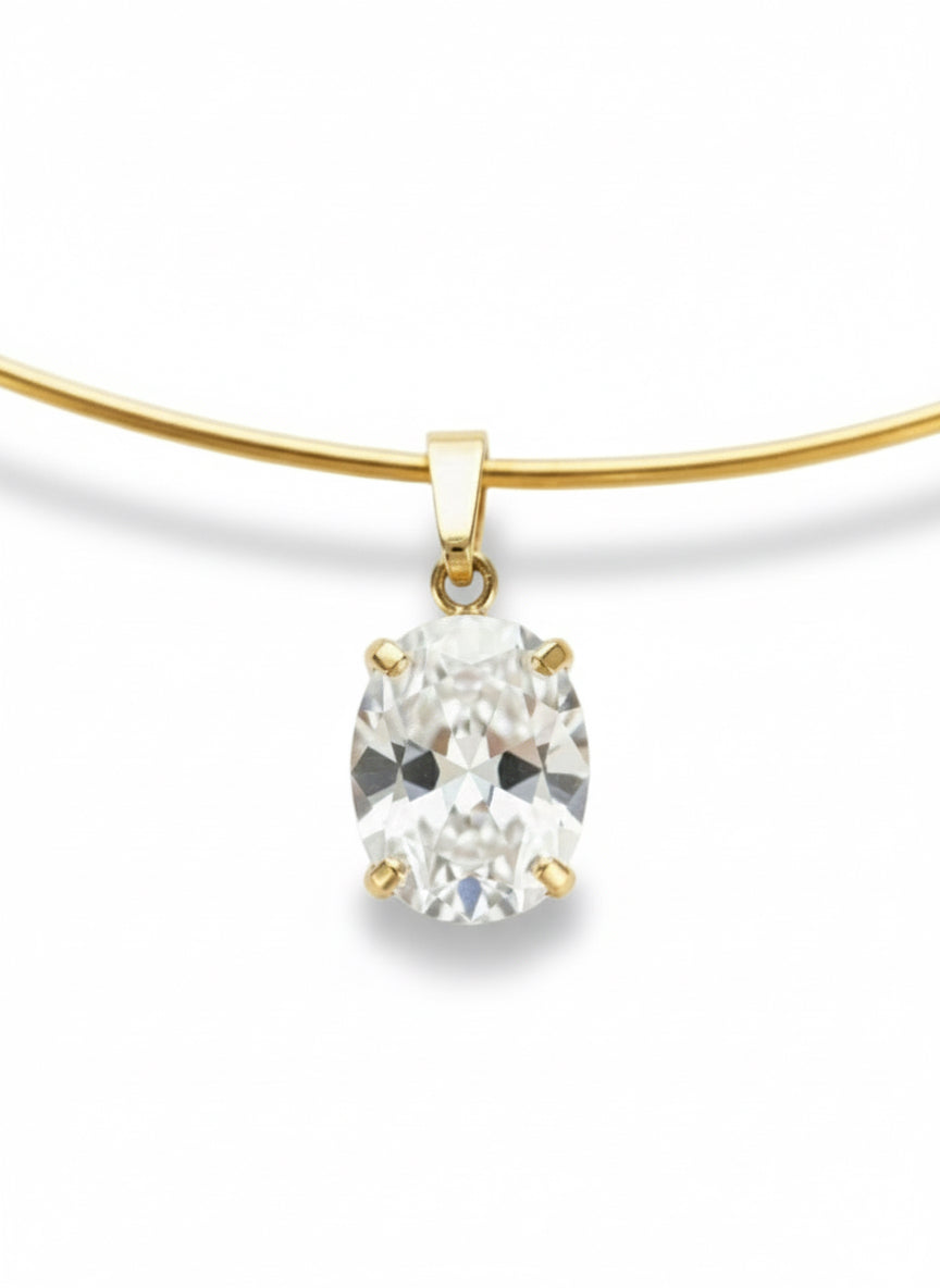 • Collana in acciaio inossidabile, maglia rigida con pietra in zircone pendente.