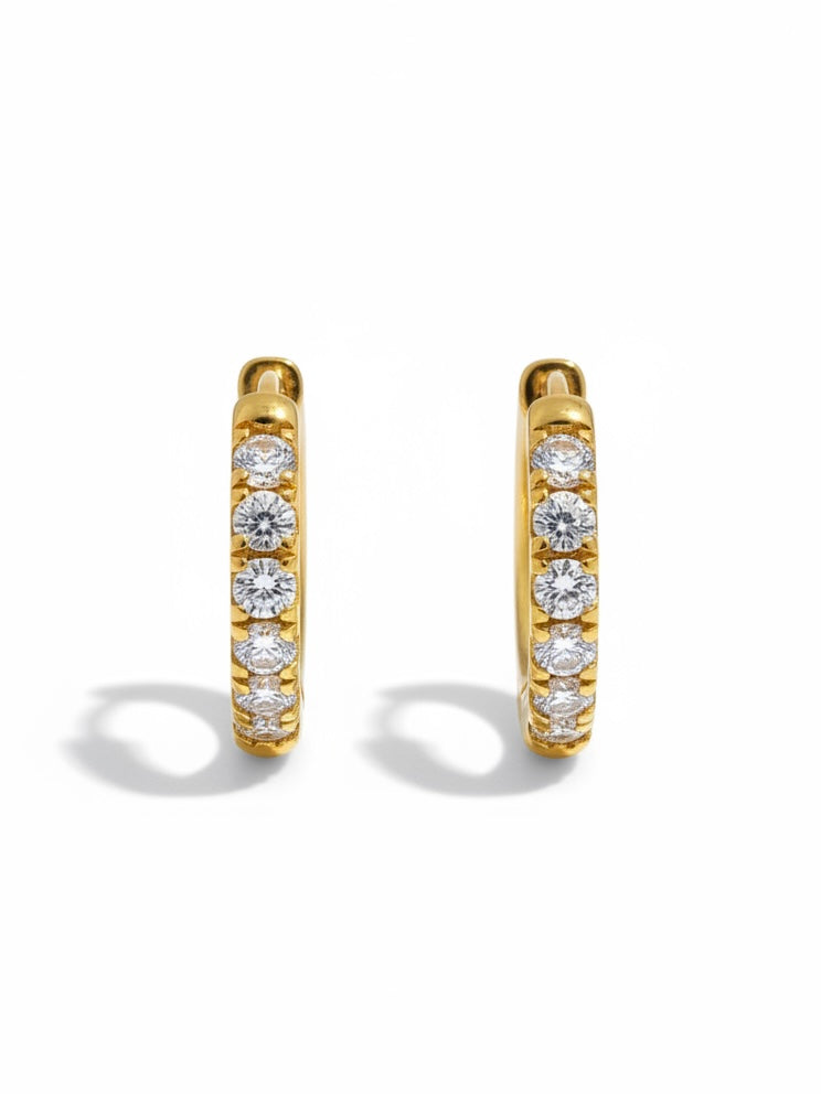 •Orecchini in acciaio inossidabile, cerchietti con zirconi incastonati.