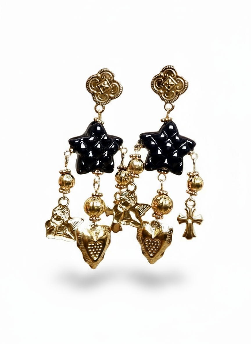 • Orecchini in acciaio inossidabile, orecchini con ciondoli cuore, angelo e croce pendente.